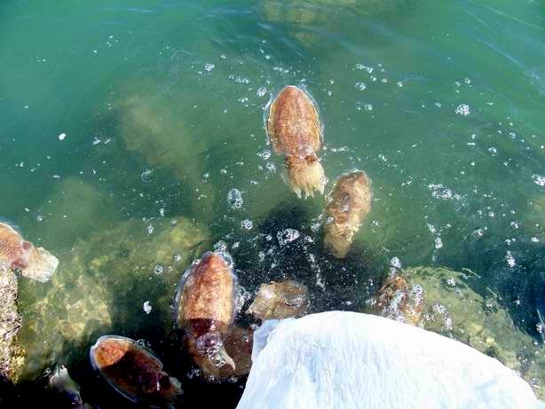 ----而看起来温顺的墨鱼则比较有脾气,弄不好会喷一身墨,呵呵.