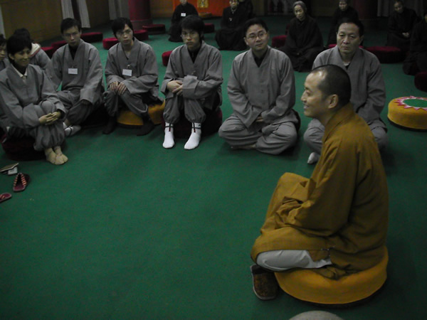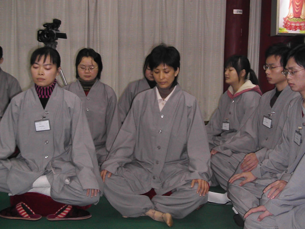 重庆佛教在线11月26日讯 2006年11月26日,学员们在厚重的打板声中醒来,继续体验出家生活的第二天。做完每天必修的早课后,重庆华岩寺方丈道坚法师带领学员们来到禅堂学习禅修,道坚法师详细地开示了什么是禅,禅修的方法和障碍以及意义,使学员们了解到禅修是对治我们身心的药,是一场身和心的对话。