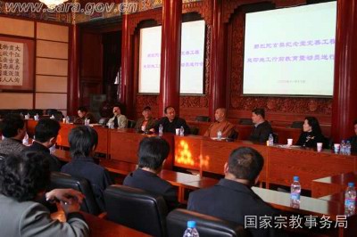 据国家宗教事务局网站报道:11月18日下午,“那烂陀玄奘纪念堂完缮工程赴印施工行前教育暨动员送行会”在国家宗教局银安殿举行,齐晓飞副局长到会并讲话。送行会由国家宗教局办公室巡视员、工程中方代表团团长王健主持,国家宗教局办公室主任张乐斌、一司副司长王哲一、外事司副巡视员赵磊、施工方全体人员参加了送行会。