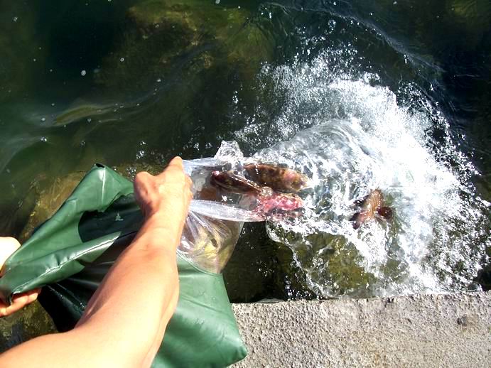 ----收到秋儿师兄和小小秋宝宝的110元,秋宝宝希望能够放生小刺鲍,可惜最近一直没有见到小刺鲍.但今天放生的漂亮小海鱼,小小秋儿一定看了也非常欢喜. 等下次见到刺鲍的时候,一定为秋宝宝放.呵呵. 16日放生数目如下: