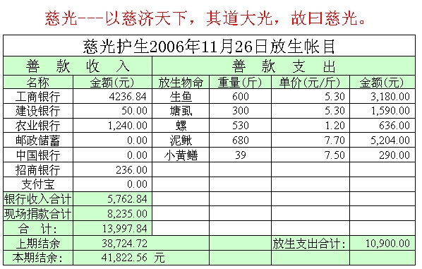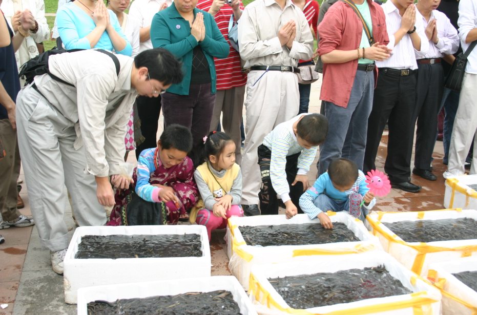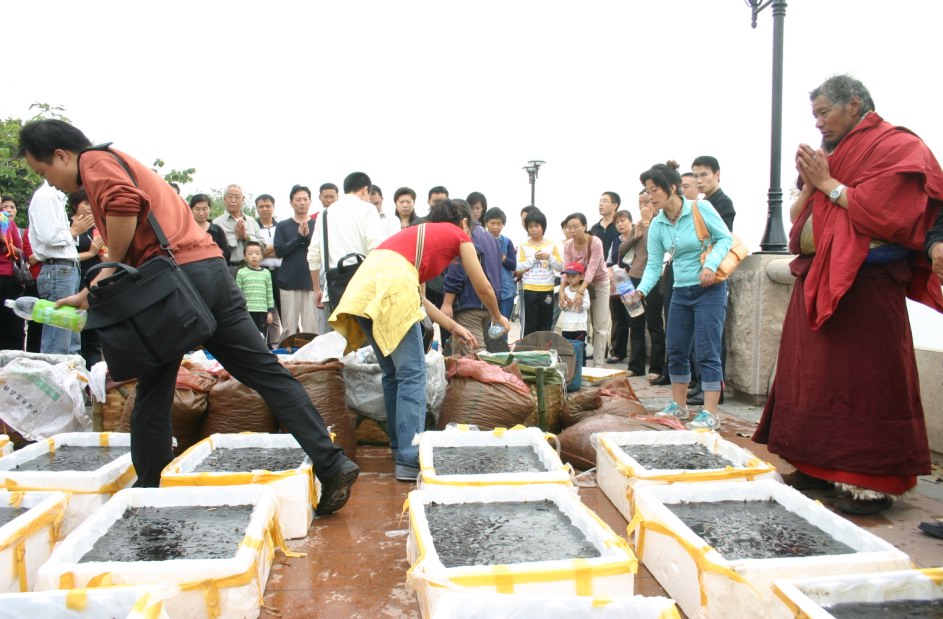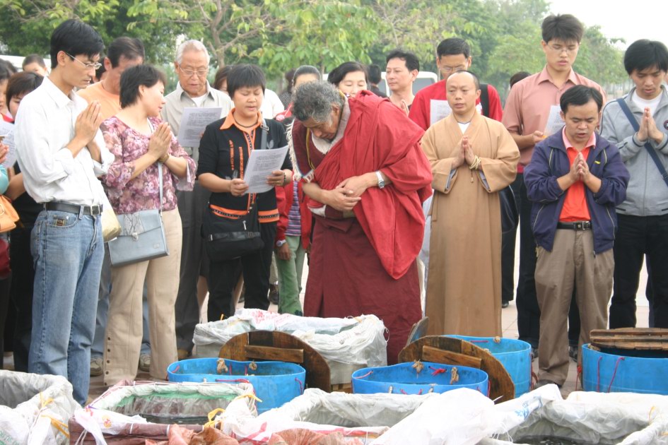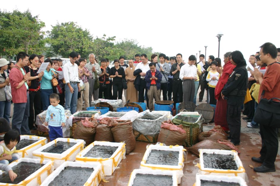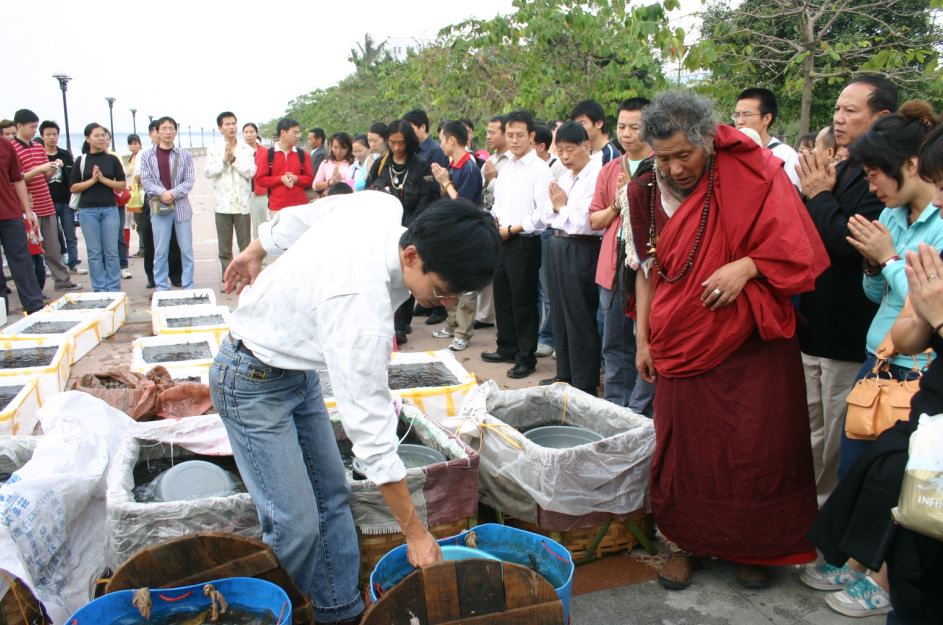 既放之后,永不遭遇网捕吞杀,获尽天年,速生净土!并愿捕生人等,回心向善,顿悟三世因果、