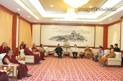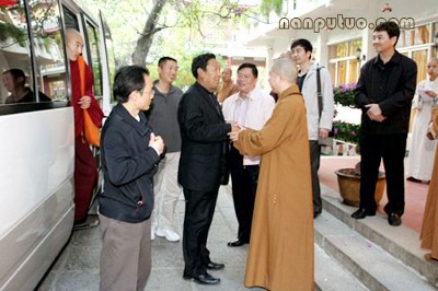 据南普陀在线报道:12月5日下午4点50分,西藏自治区拉萨市统战爱国人士以拉萨市政协副主席、市委统战部长尼玛旺堆为团长组成的赴内地参观团一行32人来访南普陀寺。厦门市民宗局陈建德局长,厦门市佛协会长、南普陀寺方丈则悟法师,市佛协副会长界象法师、法源法师、开敏法师、蔡友益居士,市佛协秘书长净心法师,副秘书长忠明法师以及南普陀寺大知客妙真法师等给予了热情接待。