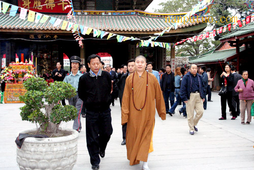 12月10日下午4点50分,中央统战部边巴扎西一行33人来南普陀
