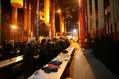 其中包括斋天、放焰口等佛事。斋天又名供天,是寺院中每年岁朝佛事。净寺凌晨三点半起进行。部分信徒二点起就起来开始念经。