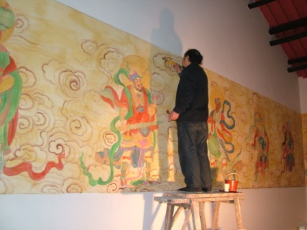 画师擅长山水画和人物画,他说,“这次能够为华岩寺创作壁画,实属因缘殊胜,心中常生欢喜之心,更有诸佛菩萨慈悲加持,得以灵感不断,作起画来得心应手!”正是有了许许多多像冯画师这样发心护法的居士,华岩道场才得以更加兴盛,道坚大和尚才能够更好的弘法利生,更好的住持一方佛法。