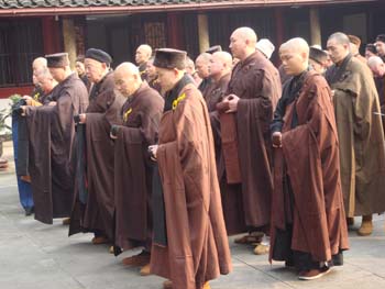 我寺一年一度的冬季禅七法会于12月21日如期起七。下午2点30分,按天童禅寺的规矩,依次进行了“告生死假”、“普茶”、“起七”活动。