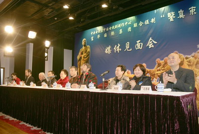 “电视剧《鉴真东渡》主创人员媒体见面会”今天在中国紫檀博物馆召开,导演林大庆、著名演员迟重瑞、该剧本作者韩素真、《鉴真东渡》佛学顾问陈洁伟、全国政协委员、中国紫檀博物馆馆长陈丽华女士、中央电视台中国电视剧制作中心副主任李汀等出席了会议。