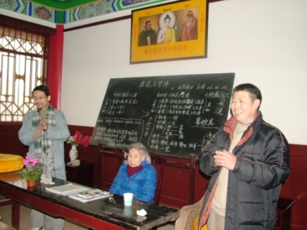 正思居士讲授《孝道与佛学》 蒋居士及他的高寿母亲,图为