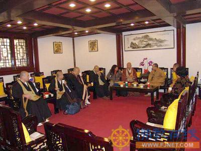 12月13日中午11时,日本临济宗灵云院住持则竹秀南一行八人和日本名古屋“两尊观音思考会”到南京毗卢寺参访。南京市宗教局副局长马荣恩、居尔露、毗卢寺首座净朗法师、监院昌宏法师、法荣法师和南京金陵刻经处主任徐卫等陪同接待了客人。