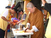 另一方面,如功法师与佛光人一行人在亚罗拉村长方玉英带领下,乘坐四轮驱动车深入偏远灾区,以行脚方式在3个乡村分发便当和矿泉水给灾民,历时4小时,一共分发800盒便当,受益者大部分为马来友族。