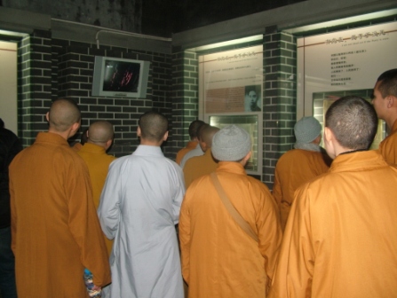 下午一点,大家乘作大巴来到烈士陵园,一一参观了白公馆、渣滓洞等历史遗迹。学僧们倾听解说员为大家讲解在这里曾经发生过的可歌可泣的悲壮故事,亲身感受到先烈们不屈不挠即便受尽折磨也誓不投降的无畏精神,是这些英勇的先烈们用自己的鲜血和生命迎来了新中国的诞生!所有的学僧均感到今天能够安心修行实属不易,无不为之默哀致敬!五点钟,此次活动圆满结束。