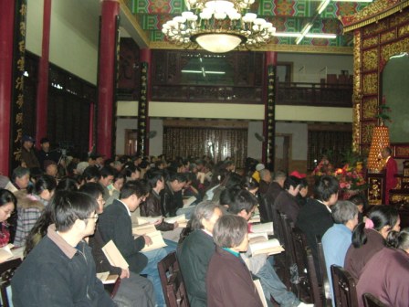 学子们恭敬听闻道坚大和尚宣讲正法