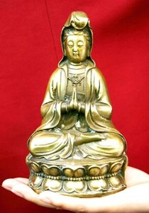 据介绍,这尊古佛像是在位于“死亡之海”塔克拉玛干大沙漠北缘的新疆库车县境内现身的,佛像材料采用古铜精密铸造,佛像高18.3厘米,直径为10.2厘米,重0.83千克。佛像造型为一尊坐观音,观音双手合十,端坐在莲花上,端庄而慈祥的面容,整体生动流畅,栩栩如生。尤其是服饰飞舞飘逸,将观音的世俗化和个性化以及亲和力表现得淋漓尽致,其独特的造型风格以及佛像造型保留了原始风格。考古专家指出,这尊传世观音古铜佛像是早期佛教传入中国的历史见证。