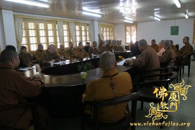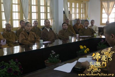 本次会议由定恒法师主持,参加会议的有:厦门市佛教协会会长、南普陀寺方丈则悟法师,厦门市佛协常务副会长定恒法师,副会长法云法师、法源法师、开敏法师,秘书长净心法师,副秘书长忠明法师、竺冰法师,厦门市民宗局一处钟晓波主任及厦门市各寺庙的主要负责人。