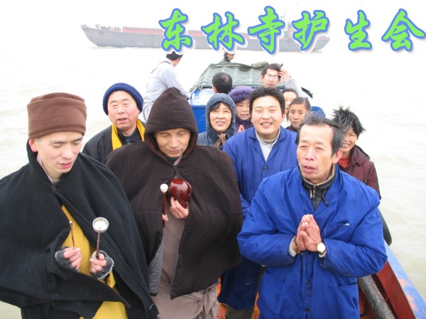 在荡漾的鄱阳湖放生,让大家忘却了寒冷,充满了法喜。