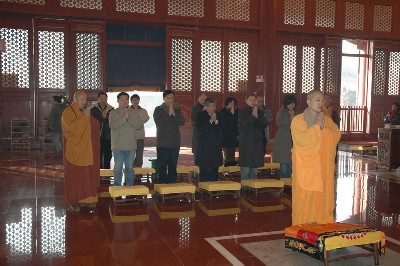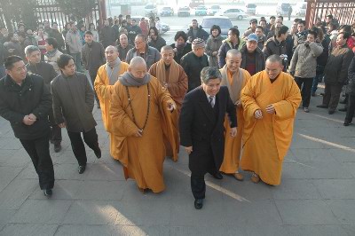 据柏林禅寺报道:1月17日上午9点,香港旭日集团杨勋先生率石家庄分公司员工一行九十余人回山礼佛,受到净慧长老和明海法师的热情接待。