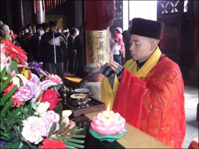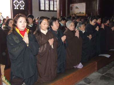 纪念释迦牟尼佛成道日 西园寺为信众正授三皈五戒