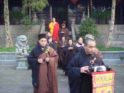 据天童禅寺讯:2007年1月26日早8点,在天童禅寺隆重举行了传授“三皈五戒”法会。来自宁波及周边市、县的200多位居士在此皈依受戒。