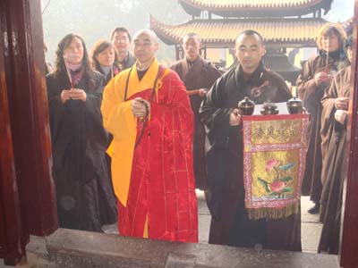 当天是腊月初八,即释迦牟尼佛成道之日。每年的这一天,天童禅寺都将举办“三皈”、“五戒”传戒法会以表庆祝!