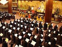 据佛光全球资讯网报道:1月5日是阿弥陀佛圣诞,各地道场纷纷举办阿弥陀佛七法会,星云法师2、3日晚上到兰阳别院、普门寺主持佛七。法师在法会上期勉大众“从念佛里念出真心,念到自己真实的生命,念出永远不死的无量寿佛。