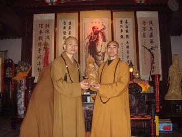 据天童禅寺报道:2006年12月31日上午十点,台湾佛光山寺现任住持心培法师一行到千年古刹天童禅寺参访,天童禅寺方丈诚信法师在大鉴堂(丈室)接待了心培法师及随行人员。