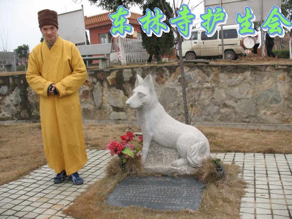 2007年1月14日星期日,东林寺护生会人员听说九江市贺家山陵园立起了一座狗的雕塑,原因是一只叫“赛虎”为了不让人们吃有毒的狗肉,舍身尝毒,救了30多人的性命,“一切众生皆有佛性”,此事非常感人,在九江几乎家喻户晓。因此,护生会人员决定前往看个究竟。