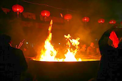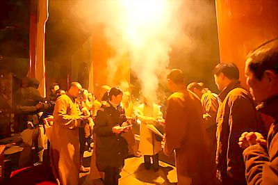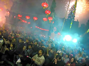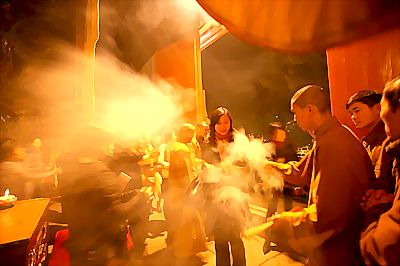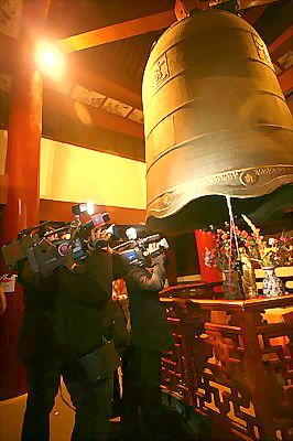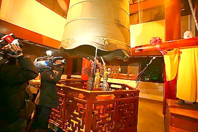 ![]() 司钟法师敲响一百零八下吉祥钟声,在零点前的20秒左右结束 |