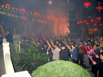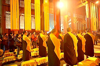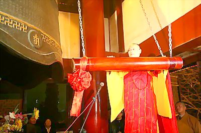 ![]() 杭州佛教协会会长光泉法师开敲三下新年钟声 |
