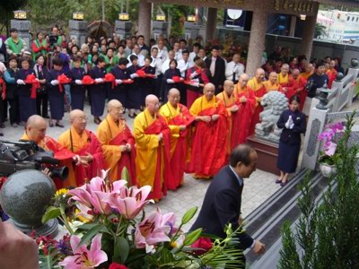 东林净苑落成启用,恭请诸山长老剪彩。