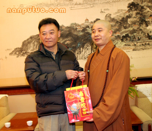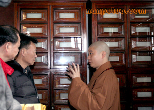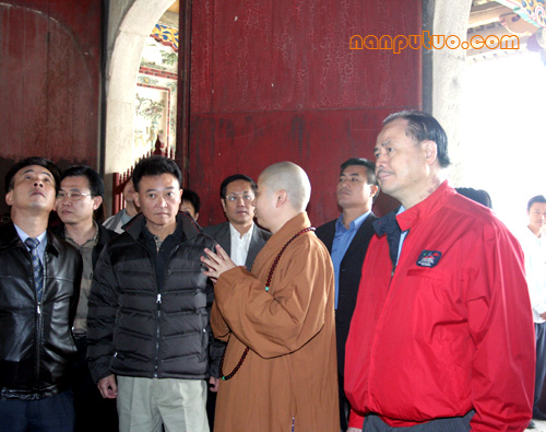 大和尚引领考察团一行,参观了南普陀寺的天王殿、大悲殿、法堂、藏经阁等处,并一一向他们介绍寺院的建筑风格,佛像、血经等文物情况。并向他们赠送了佛教礼品和南普陀素饼,谨以此表达对海峡对岸同胞的无限亲情。