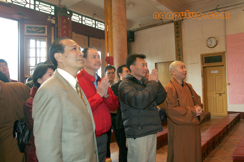1月18日上午10点40许,台中市议会厦门市市政考察团一行26人(包括有台湾各主要政党人士), 在厦门市委陈修茂书记、厦门市人大常委会杜明聪副主任、宣传部洪碧珍部长等领导的陪同下,前来我寺参访。我寺方丈则悟大和尚携执事热情接待了考察团一行。