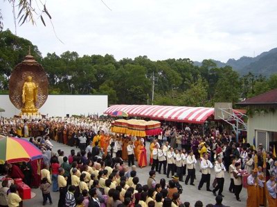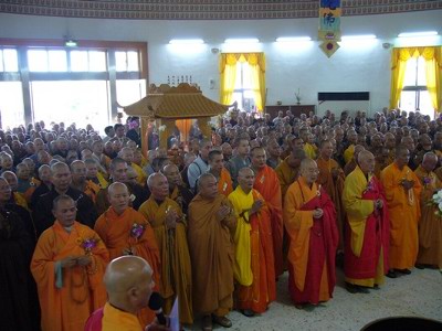 八百余位长老法师齐聚世界和平舍利塔念佛回向。