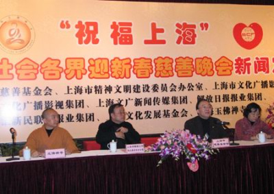 据玉佛寺报道:2007年1月23日下午,一年一度的“祝福上海” 慈善晚会的新闻发布会在上海玉佛寺举行。