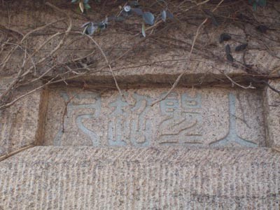 最令人称奇的,是观音殿院门上方石刻门匾,上刻四个篆字:“入圣超凡”,具体年代不详,但根据石料风化程度和在古建筑的位置判断,是最初修建观音殿的遗留物,有400年以上历史。此石刻字体娟秀,刻工精细,是崂山石刻的上品。