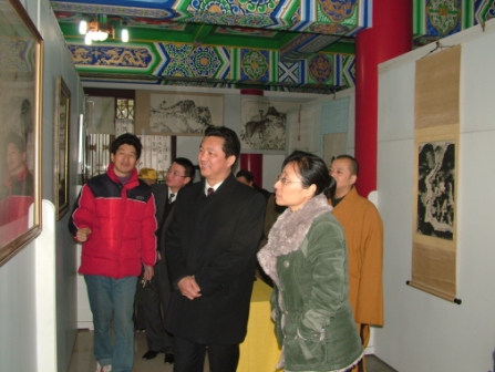 道坚法师陪同项市长助理等领导参观佛教文化展览
