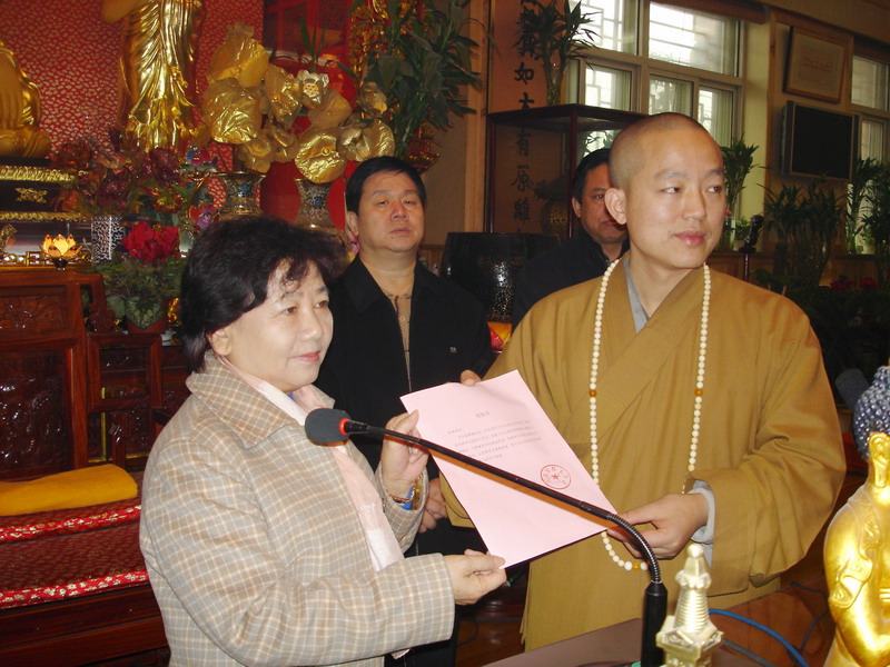 1月2日早9点,明海法师应邀在石家庄真际禅林为大众开示《信心铭》,随后举行了“爱与心相连”慈善募捐晚会的新闻发布会。