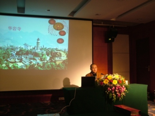 主持人为大家介绍重庆市佛教协会会长、重庆佛学院常务副院长、华岩寺方丈道坚法师