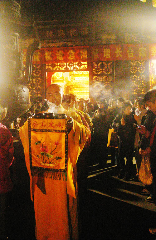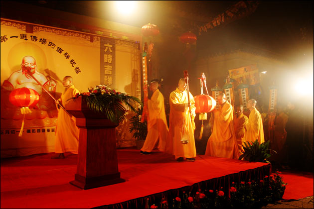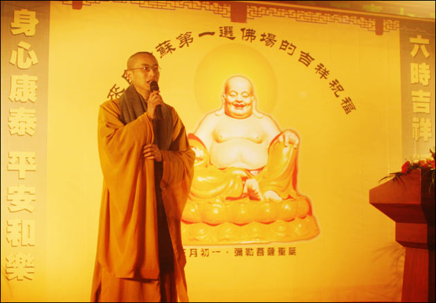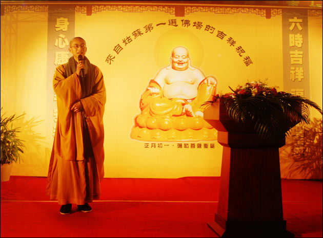 新年钟声结束后,普仁大和尚又来到天王殿前,向前来敬香的信众及来宾发表新春致辞,祝福大家六时吉祥,福慧增长。