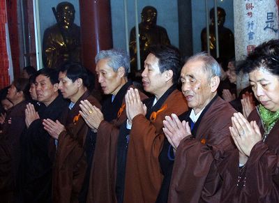 福州佛教信众在法海寺共同祈祷国泰民安世界和平
