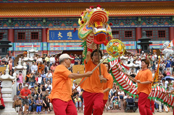 “大雄宝殿”当夜香火不断,年初一整天的法会及嘉年华会活动吸引了上万人潮,浓郁的节日气氛,深层的文化气息,紧紧的扣着“南非老外”的心,从他们睁圆的眼睛,闪烁的相机,兴奋的交谈,不难看出他们来参加这场活动不仅是为了满足好奇心,更有一种对中华文化进行深层探索与追求的愿望。