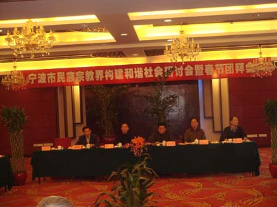 据天童禅寺报道:2007年2月7日下午,“宁波市民族宗教界为构建和谐社会服务研讨会暨春节团拜会”在宁波市凱洲大酒店隆重举行。