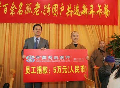 邱尚启先生代表厦门民生银行全体员工向南普陀慈善会捐赠人民币50000元。