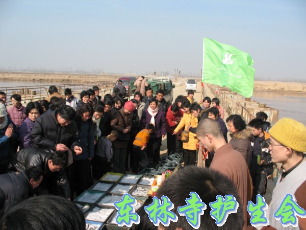 2007年2月9日,东林寺护生会在黄河开封段为艾滋病人举行大型放生活动,祈愿艾滋病人能够离苦得乐,早得解脱。此次放生护生会委托商丘范居士和柘县众居士帮忙买的,共计出资45000元,放生物命主要有黄鳝、泥鳅、乌鱼,乌龟、甲鱼等等。参加放生的人员来自河南各地,大家都法喜充满。