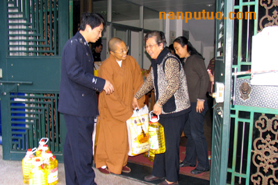 座谈会结束后,普陀法师、德鸣法师与派出所所长张建、教导员戴碧荣等一道,走访了其中5户贫困家庭,将慰问金和慰问品送到他们家里。随后,普陀、德鸣和觉明、通灵法师又来到厦门市思明区厦港医疗保健托老所慰问老人,给他们送去了1500元现金和价值5000多元的大米、粉丝、面条等食品,以便在春节期间丰富老人们的节日饮食。