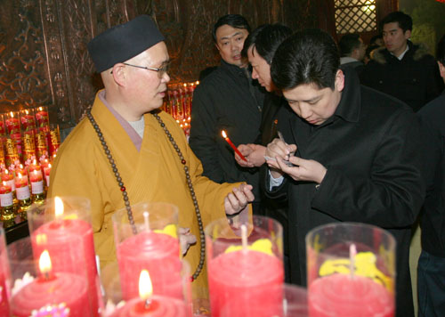 2007年2月18日,北京广化寺除夕夜隆重举行除夕撞钟点灯法会。