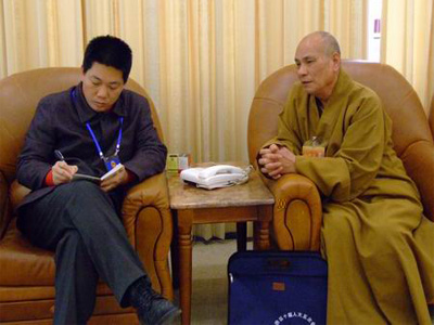 在访谈中,荣波法师说:“我的最大心愿就是百姓安康,就是社会和谐。”他说,去年参加了在杭州召开的首届世界佛教论坛,论坛主题是“和谐世界,从心开始”。会议讨论得最多的就是和谐和教育。