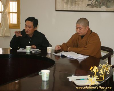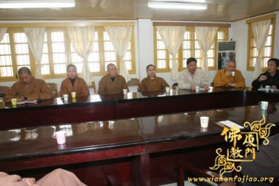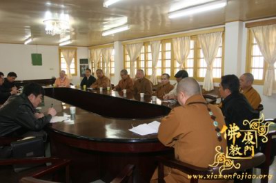 据厦门佛教在线报道:2月1日上午8点30分,厦门佛教协会召开副秘书长以上会务会议,到会的人员有:厦门市民宗局蔡永华副局长、苏人登处长、钟晓波主任,厦门市佛协会长则悟法师,常务副会长定恒法师,副会长界象法师、法云法师、法源法师、开敏法师、蔡友益居士,秘书长净心法师,副秘书长能元法师、竺冰法师、曾全民居士。会务会议由则悟法师主持,对厦门佛协今后5年的工作计划希望大家提出好的建议和意见。