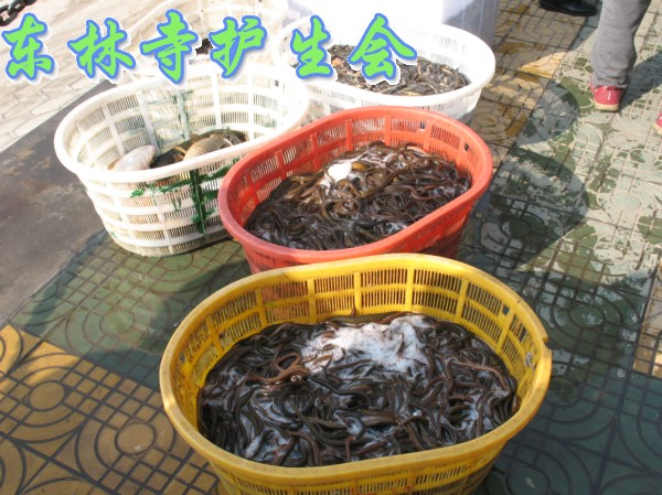 放生物类:鲤鱼、黄鳝、乌鱼、八哥、丝光鸟、麻雀、野鸽、银鸟、白头等鸟类。