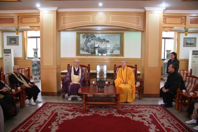 参观完毕,客人们来到指月楼客厅,明海法师和有马赖底长老进行了座谈并互赠纪念品,大家纷纷表示对此次朝礼赵州祖庭感到十分高兴。