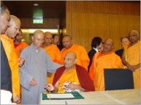 据法鼓山全球信息网报道:法鼓山办理佛教僧伽教育的成就,深获世界各地佛教团体的肯定。在三月二十四日下午三点,由南林尼僧苑邀请来台参观台湾僧伽教育的斯里兰卡最高长老Tibbatuwawe Sri Siddhartha Sumangala Maha Nayaka Thero,在南林尼僧苑主持惟俊法师的推荐下,首站即来到法鼓山世界佛教教育园区参访,希望藉由法鼓山的办学经验,协助斯里兰卡国内推广世界佛教的宏愿,培养更多拥有世界观的佛教僧侣。